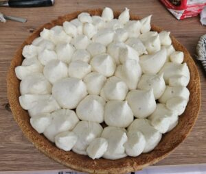 5. Remplir une poche à douille et pocher la crème diplomate sur le fond de tarte.